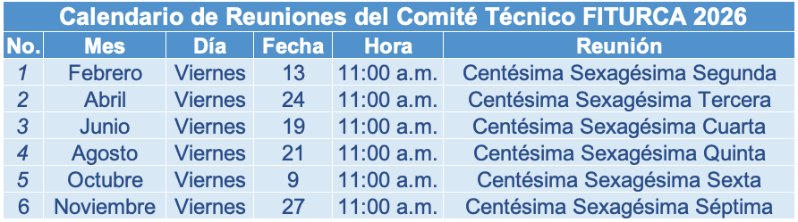 – El Comité Técnico del Fideicomiso de Turismo de Los Cabos, conforme a lo dispuesto en la décima cláusula del contrato de fideicomiso, se reunirá al menos una vez cada dos meses para garantizar el adecuado funcionamiento de sus actividades. Además, podrá sesionar las veces que sea necesario en función de la relevancia de los asuntos a tratar, por lo que el presente calendario está sujeto a modificaciones según los requerimientos de los mismos.